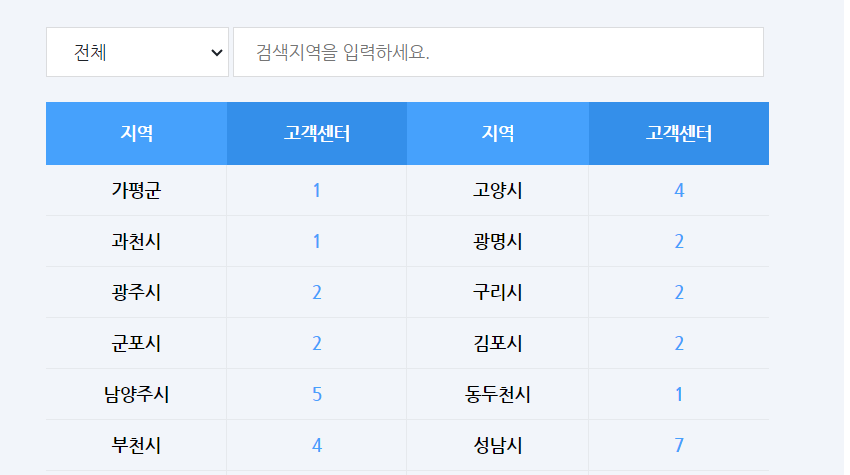 이미지에 나온 지도에서 경기도를 누르고 해당하는 시나 군을 눌러서 확인하시면 지역별로 도시가스 업체 고객센터가 안내됩니다.