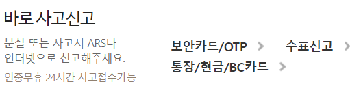 ⏩ 카드사고, 분실신고는 아래 바로가기를 통해 이동할 수 있어요.