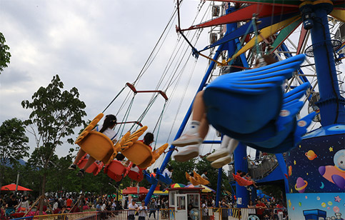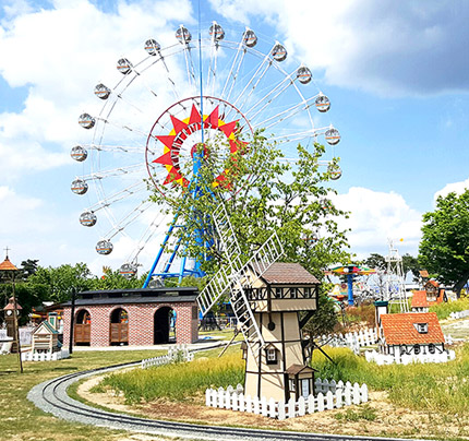 회전목마, 우주전투기, 미니기차, 바이킹 등 어린이들이 좋아하는 9개의 놀이시설을 이용할 수 있습니다.