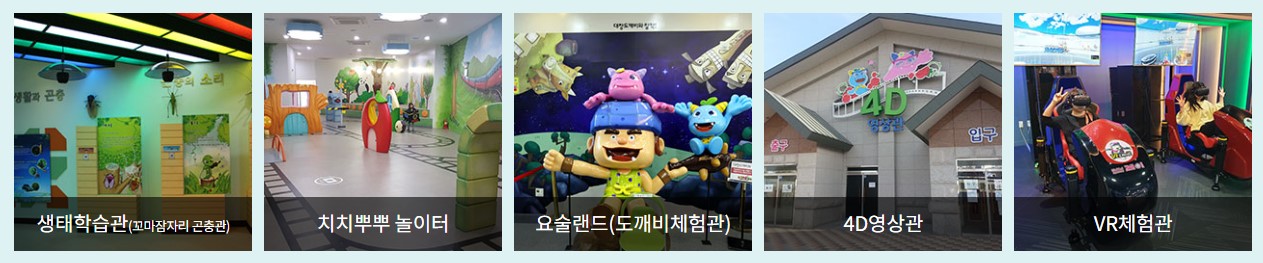 생태학습관(꼬마잠자리 곤충관), 치치뿌뿌 놀이터, 요술랜드(도깨비 체험관), 4D영상관, VR체험관은 무료로 이용 가능하다고 합니다.