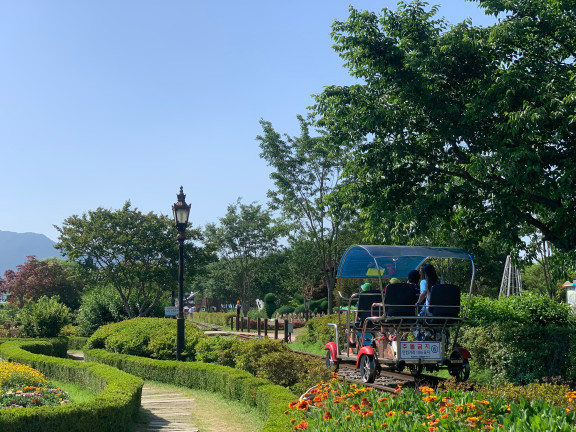 전국적으로 레일바이크가 인기 체험시설인데 곡성 기차마을에도 레일바이크가 있습니다. 1 순환당 10~15분 소요되며 이용요금은 10,000원입니다. 1대당 4명까지 탑승할 수 있으며 운행시간은 09시부터 17시 30분까지입니다. 사전 예약은 받지 않고 현장에서 선착순으로 이용 가능합니다.
