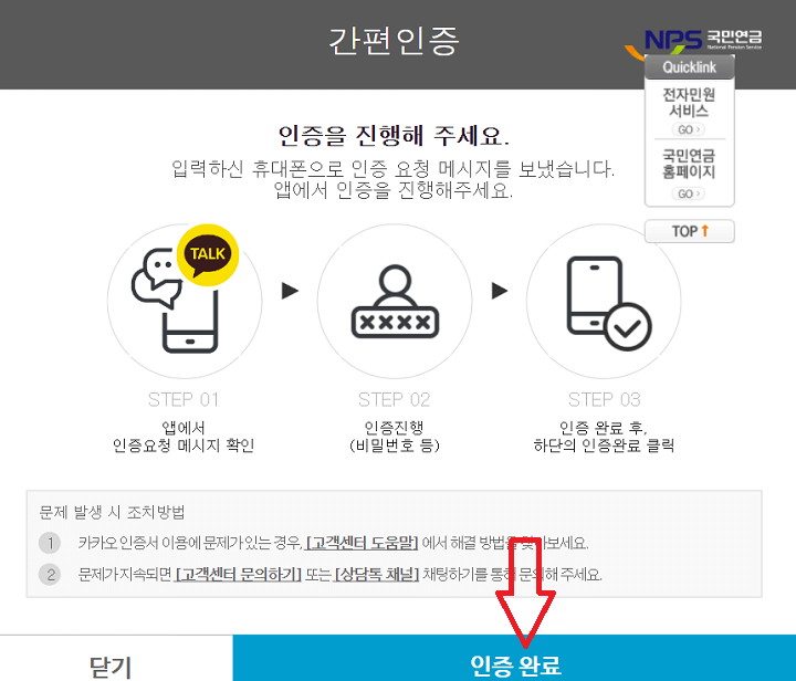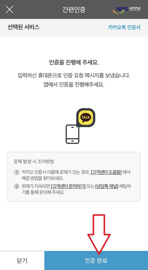 8. 다시 PC화면으로 와서 '인증완료'를 클릭합니다.