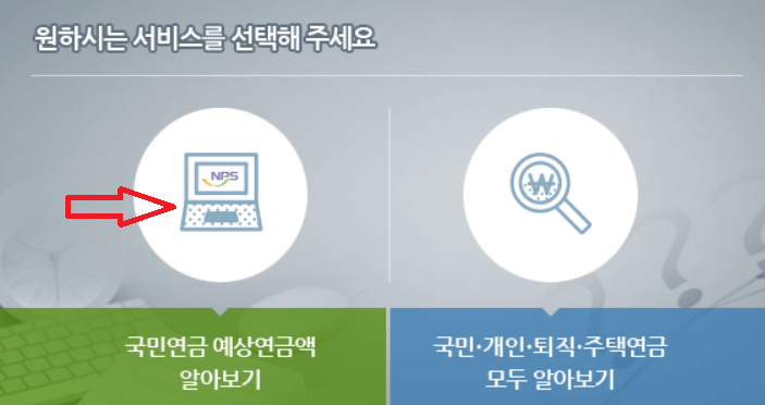 4. '원하는 서비스를 선택해 주세요'라는 화면에서 '국민연금 예상연금액 알아보기'를 클릭합니다.