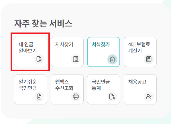 2. 첫 화면에서 '자주 찾는 서비스'에서 '내 연금 알아보기'를 클릭합니다.