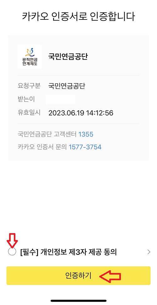 7. 카카오톡 지갑으로 온 카톡 메시지를 열어서 인증하기를 누릅니다.