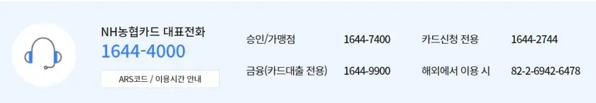 - 농협카드 고객센터 전화번호 1644-4000