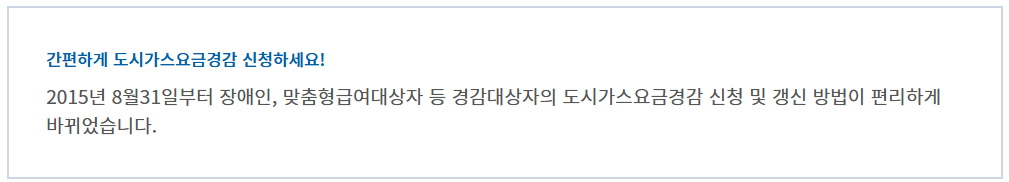 - 기본 요금: 도시가스 사용요금이 감면금액보다 작은 경우 기본요금을 제외한 사용요금만 경감됩니다.