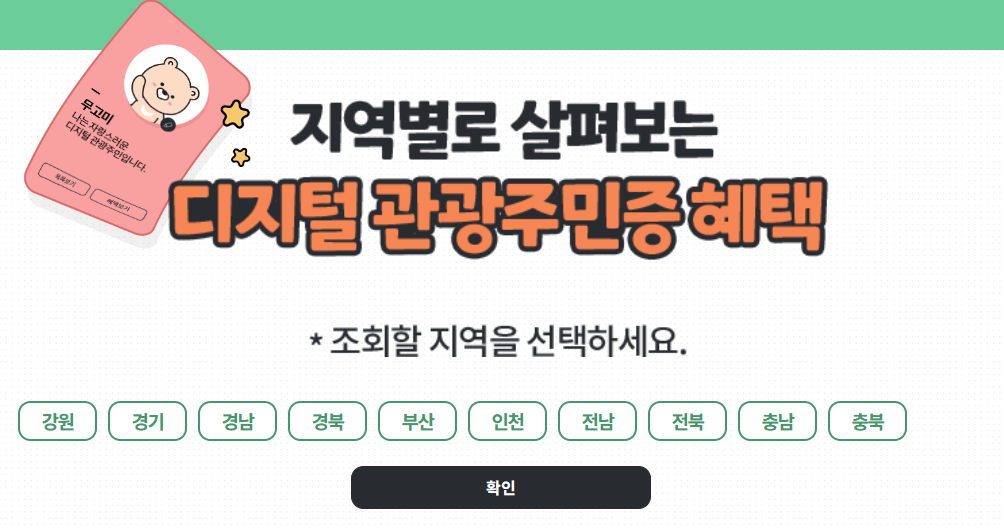 디지털 관광주민증 해당 지역 보기