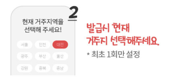 발급 신청 시 현재 살고 있는 거주지역을 선택합니다.