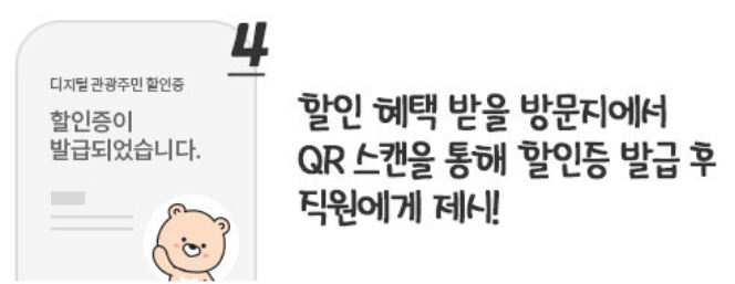 디지털 관광주민증 발급이 완료되면 QR코드가 제공됩니다. 이 QR코드를 통해 해당 지역의 다양한 할인 혜택을 누릴 수 있습니다.