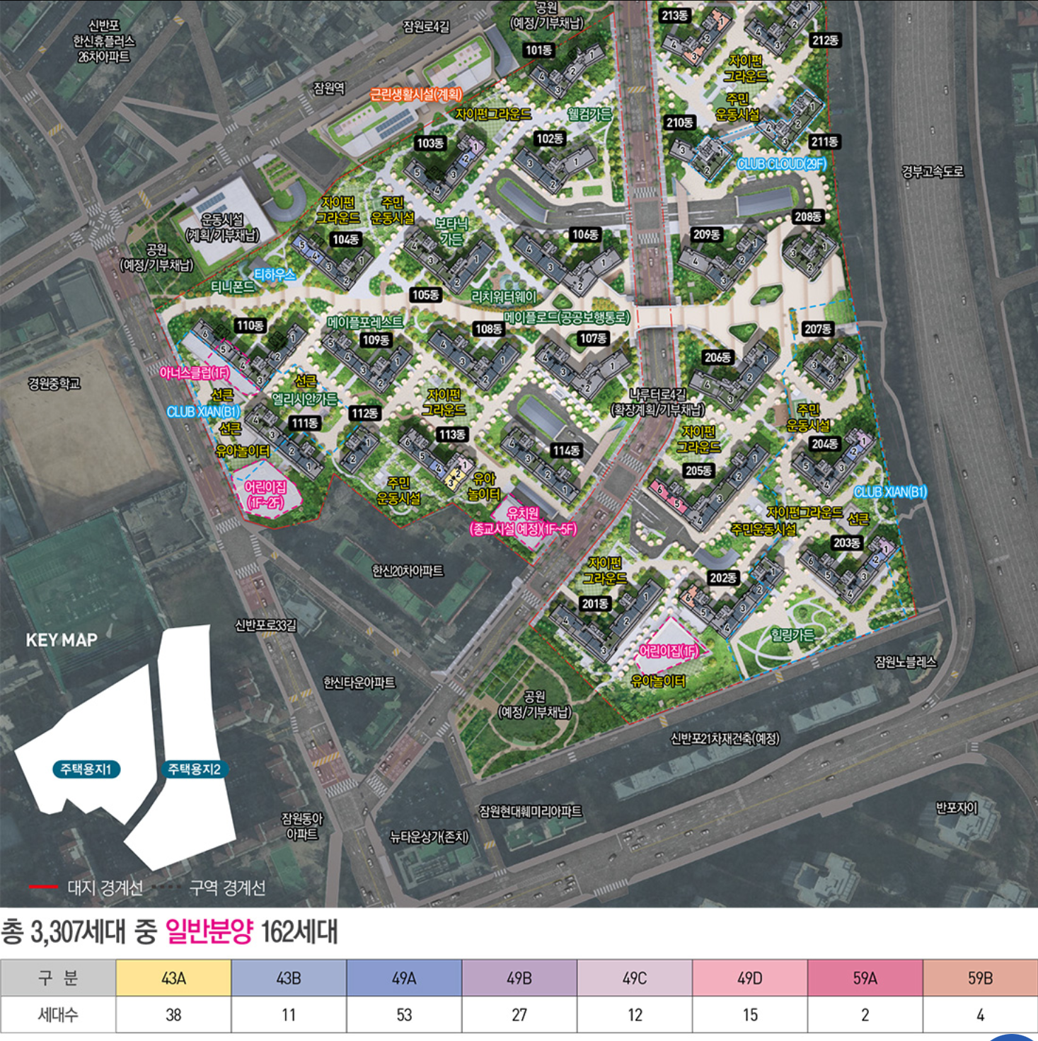 메이플자이는 서울 서초구 잠원동 신반포 4지구를 재건축한 아파트인데요. 지하 4층에서 지상 최고 35층까지이고 총 29개동으로 지어지며 총가구수는 3307가구입니다. 이중에서 일반에 분양하는 가구수는 총 162세대에요.