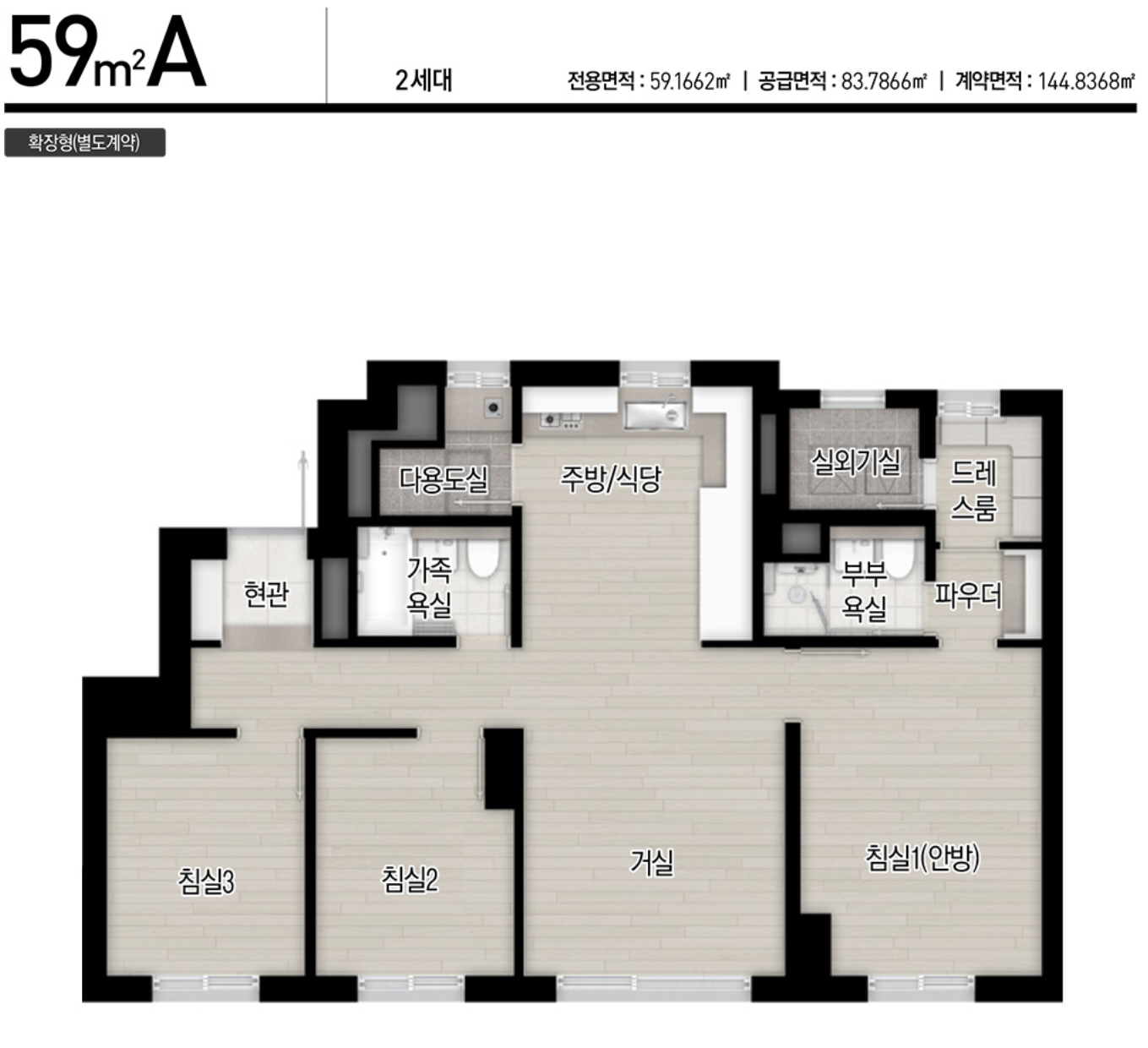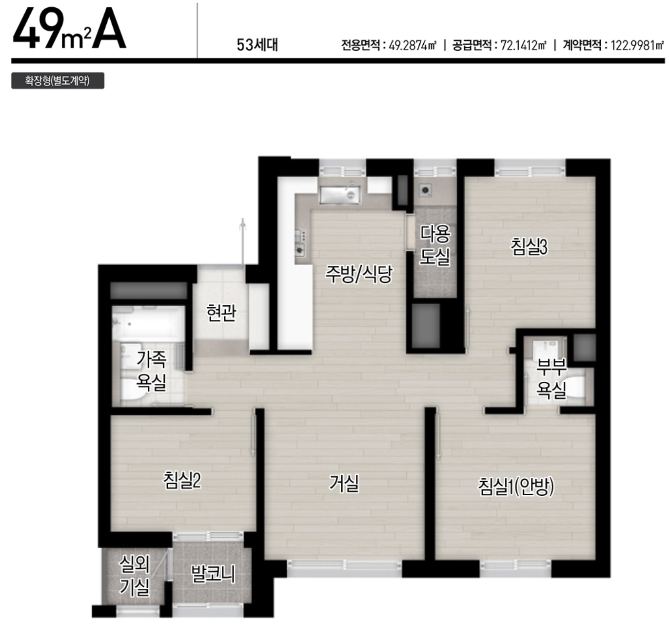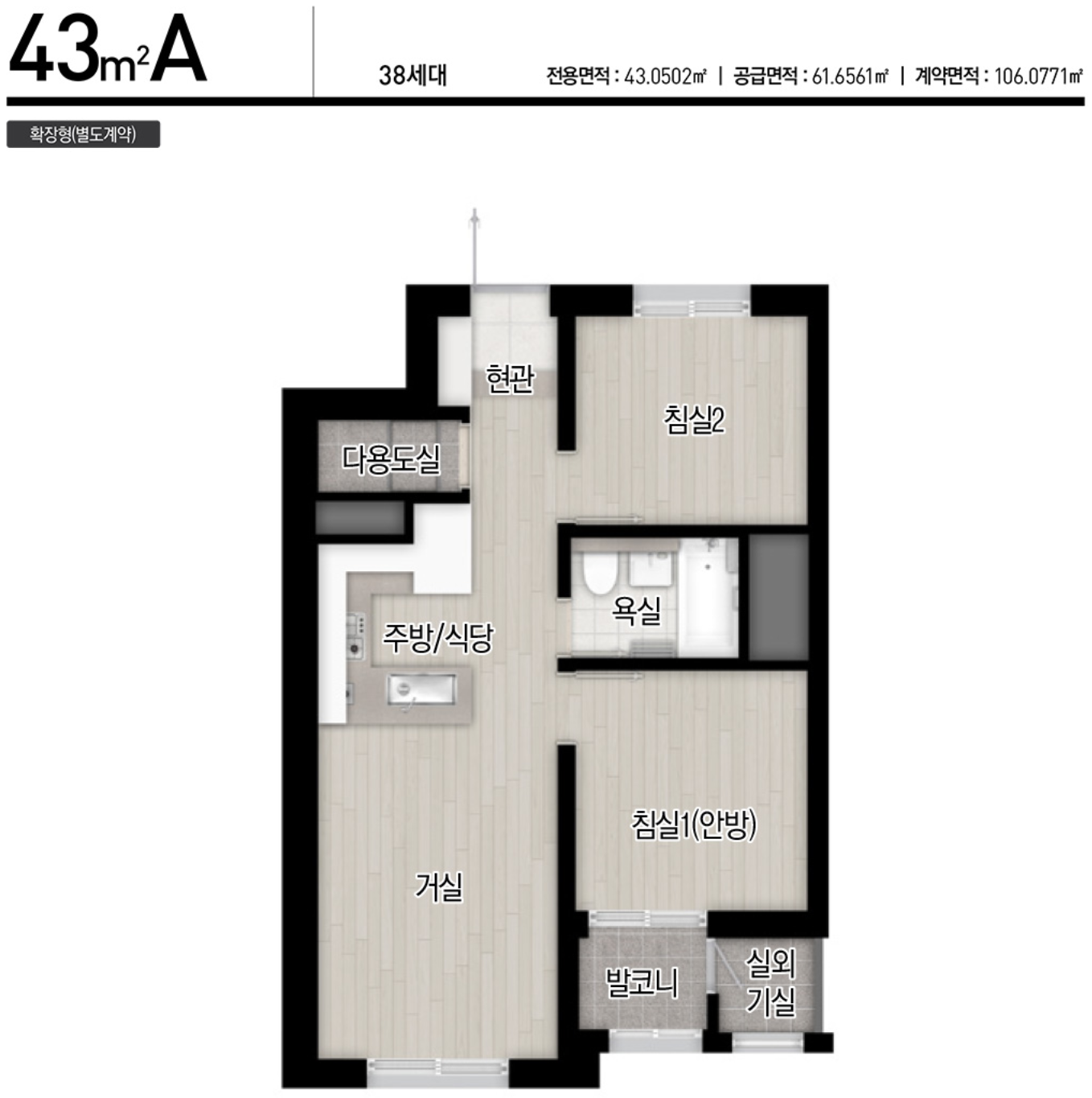 메이플자이 43형, 49형, 59형의 평면도입니다.