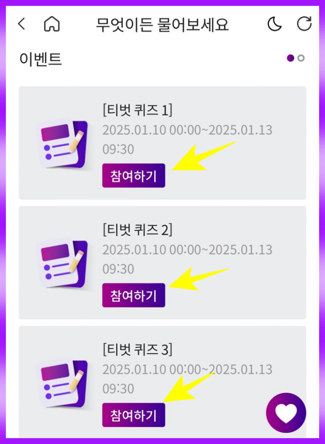 무엇이든 물어보세요 티벗 퀴즈 참여 방법