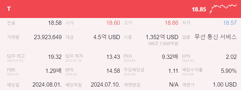 - AT&T (T): 미국의 주요 통신 회사로, 안정적인 배당을 제공합니다. 현재 배당 수익률은 약 7.0%입니다.