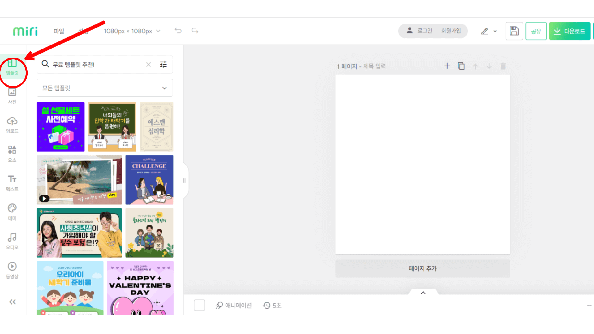 5. 이미지에서 설명한대로 무료템플릿으로 검색합니다.