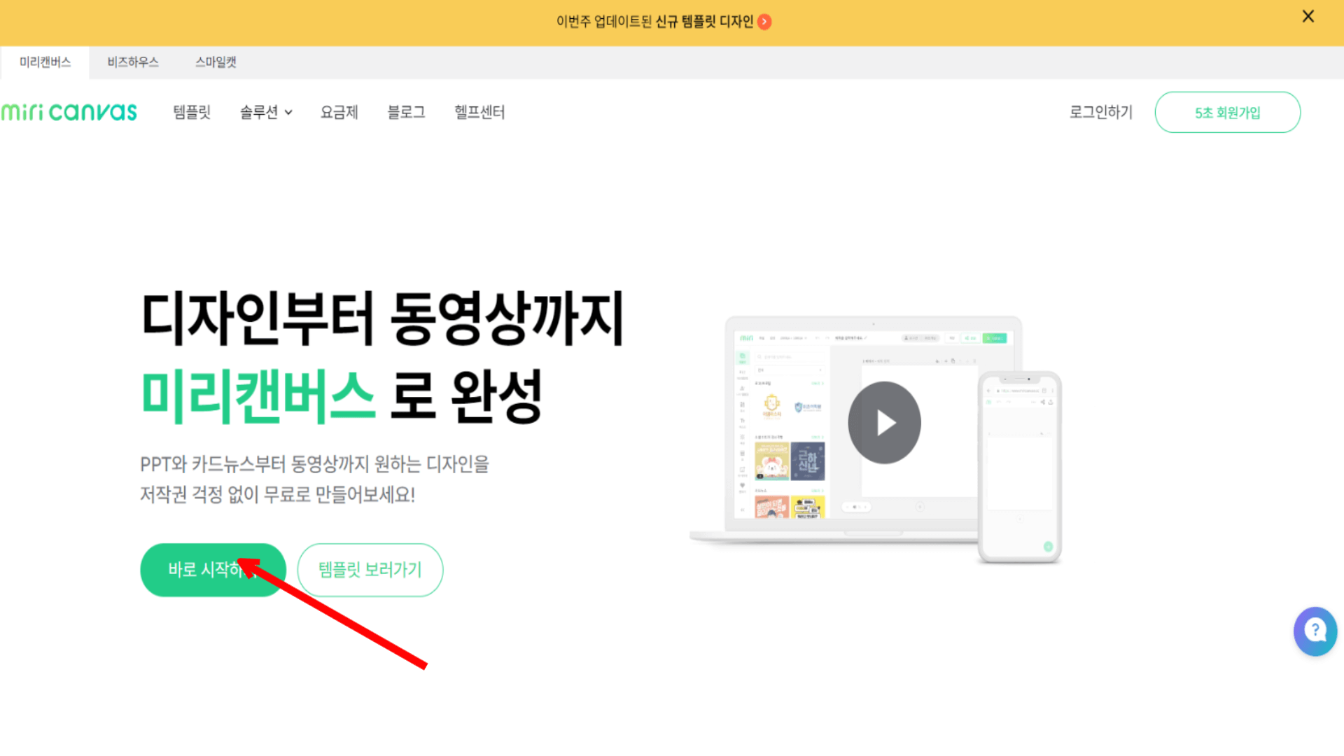 3. 바로 시작하기 버튼을 클릭합니다.