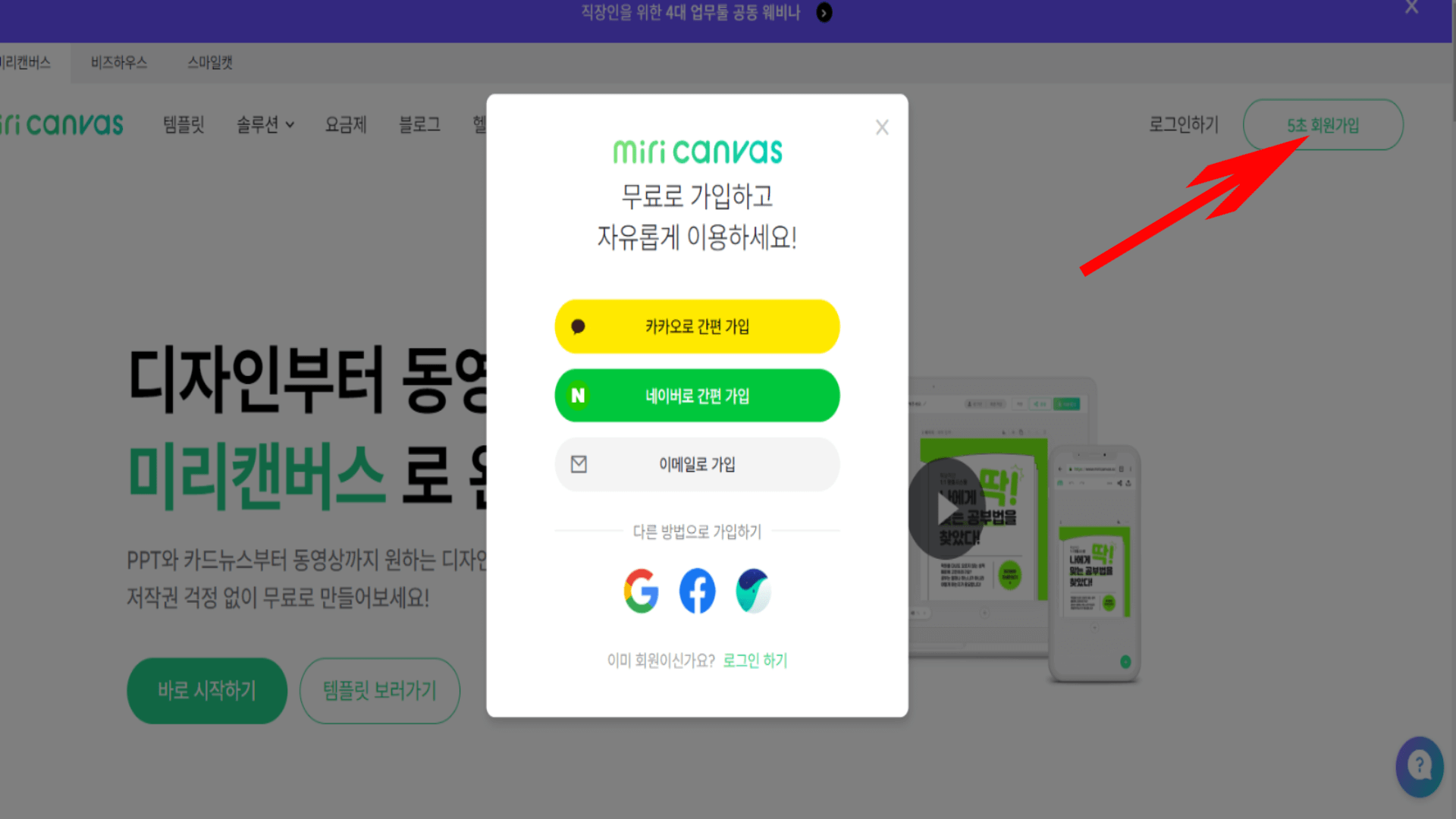 2. 5초 회원가입을 눌러서 회원 가입을 합니다.
