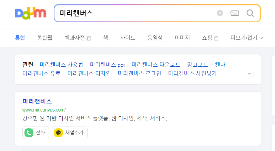1. 다음 또는 네이버 등 포털 사이트에서 '미리캔버스'를 검색합니다.