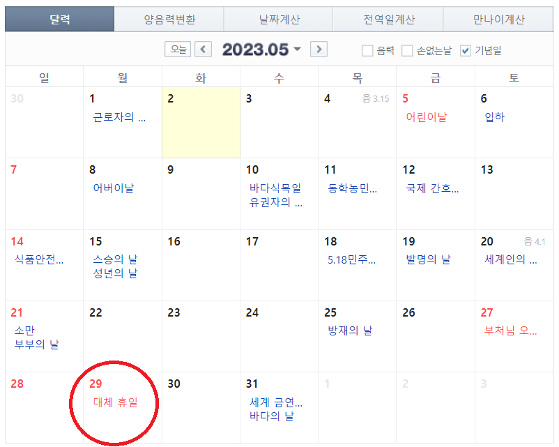 2023년 공휴일