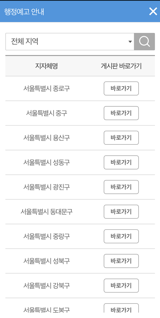 안전신문고 앱에서 '불법 주정차 위반유형 선택' 과정에서 '행정예고안내'를 누르면 관할 지자체별로 게시판 바로가기가 가능합니다.