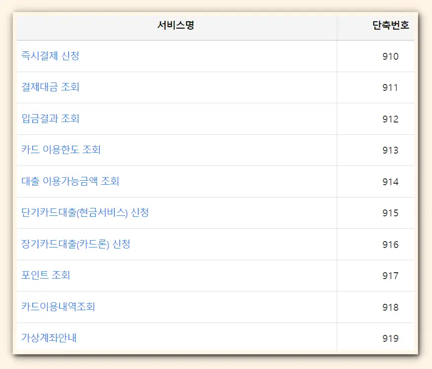 - 카드 분실신고: 2 ➡ 8 ➡ 1