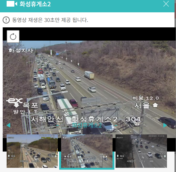 CCTV를 검색하고 구간을 누르면 위와 같은 CCTV 동영상을 실시간으로 볼 수 있습니다.