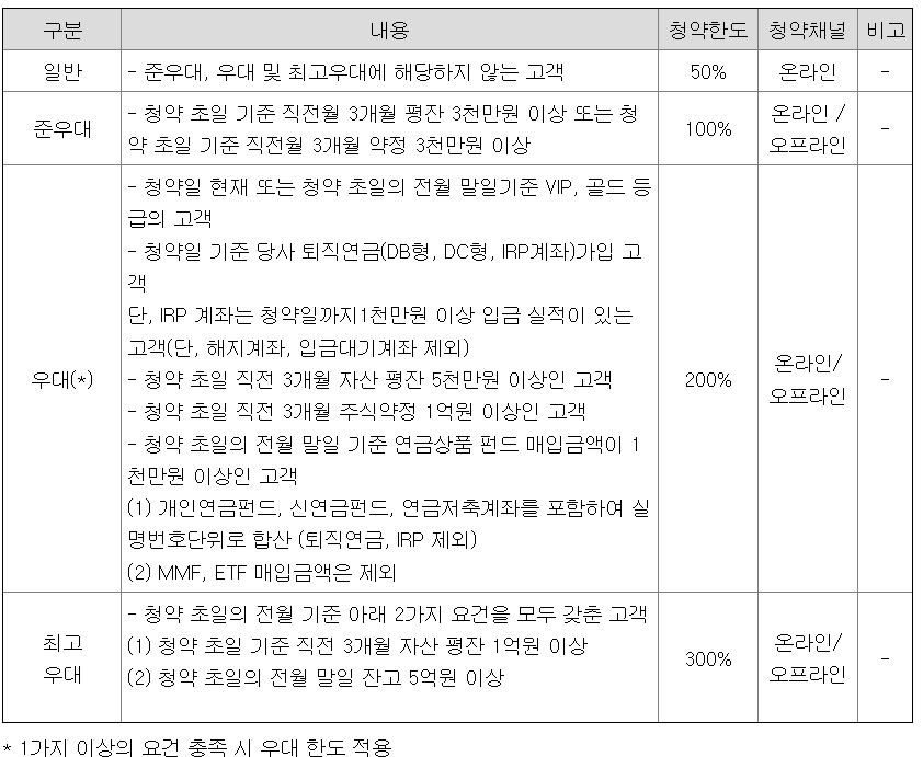 - NH투자증권 청약자격 청약한도 청약단위