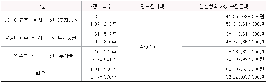 각 주관사별로 일반 청약자 배정물량이 다릅니다. 아래에서 확인하세요.