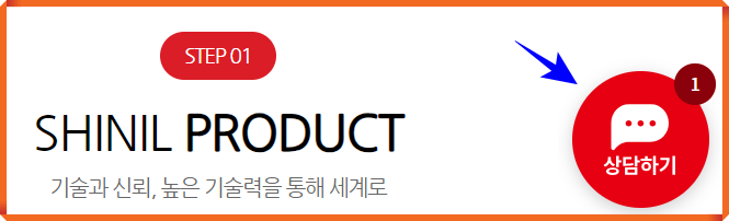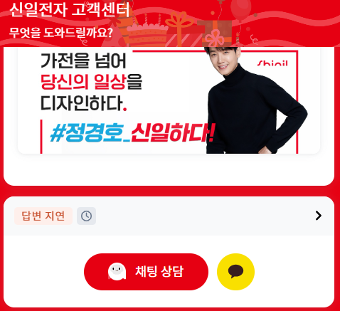 신일전자 홈페이지 화면에서 오른쪽에 있는 빨간 동그라미를 클릭하면 바로 채팅 상담 가능합니다.
