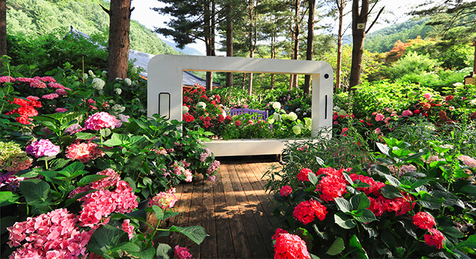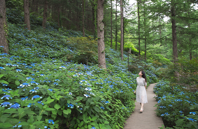 ✔ 아름다운 수국길 : 길 양 옆으로 형형색색의 수국이 가득한 수국길에서 예쁜 사진을 남겨보세요.