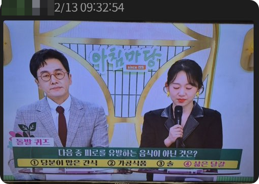 방송하는 도중에 문제 나오는데요. 문제가 나가고 4개의 보기 중에 정답을 선택하는 것이에요.
