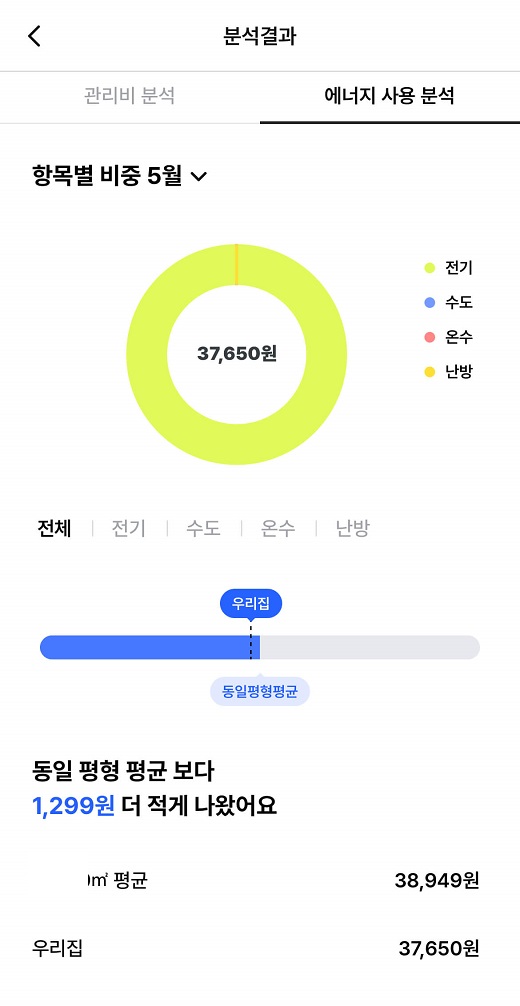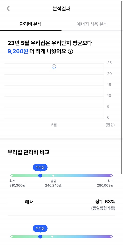 관리비 분석과 에너지 사용 분석을 볼 수 있습니다.