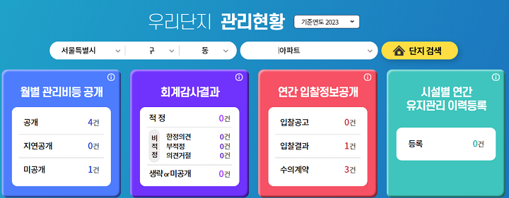 이 사이트에서 다른 단지와 우리 단지 관리비를 비교해 보고 혹시 관리비가 너무 많거나 이상한 점 없는지 확인할 때 유용할 것 같습니다.