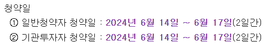 | 이엔셀 공모주 청약일정, 상장일정, 수요예측, 주관사 정보 (0) | 2024.05.31 |