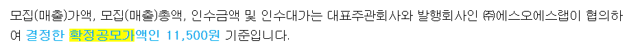 에스오에스랩은 공모가 11,500원으로 확정함에 따라 이번 공모로 약 210억원이 모집됩니다. 시가총액은 약 2016억원이 될 전망입니다.