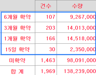 의무보유확약 비율도 다른 공모주들에 비해 높게 나왔습니다. 15일에서 6개월 확약한 건수가 506건이며 40,148,000주입니다.