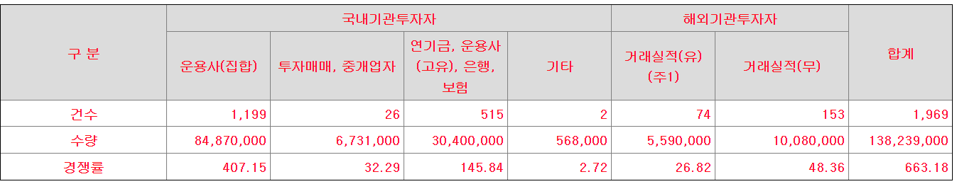 | 기관투자자 배정수 | 208,450주 (74.17%) |