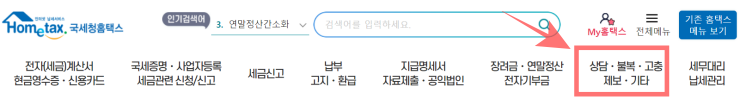 2. 로그인 후 '상담/불복/고충/제보/기타' 메뉴를 클릭합니다.