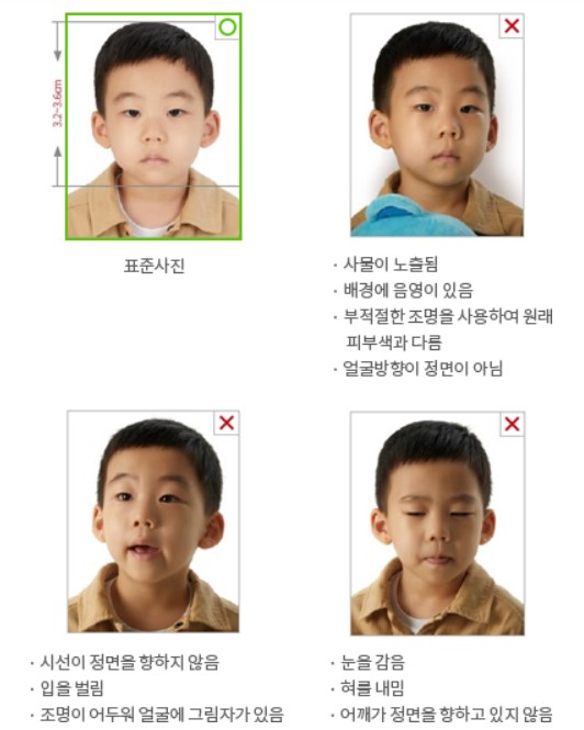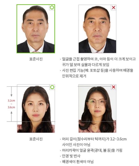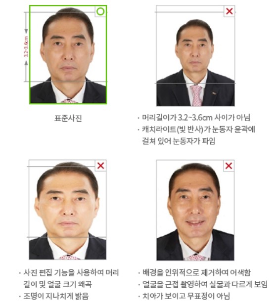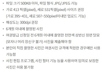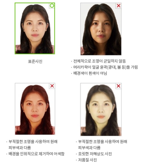 - 본인이 직접 촬영한 사진은 여권사진 규격에 적합한 경우에만 사용 가능합니다.