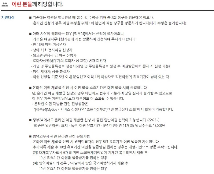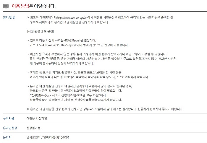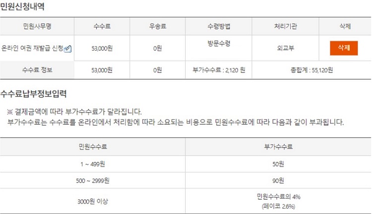 (온라인 여권 재발급 신청 시 수수료가 추가됩니다.)