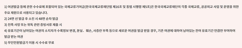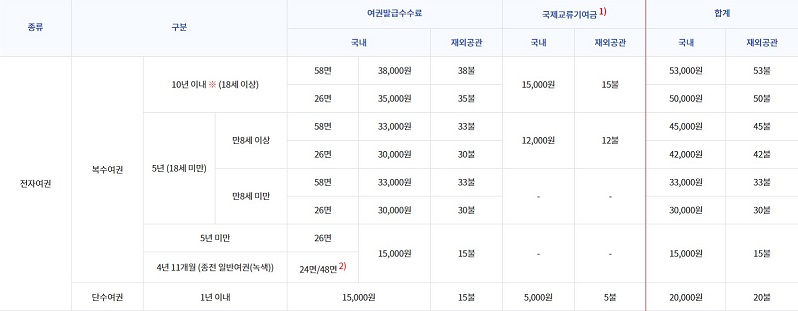 5년 유효기간의 여권 및 미성년자의 여권 발급 수수료는 아래를 확인하시기 바랍니다.