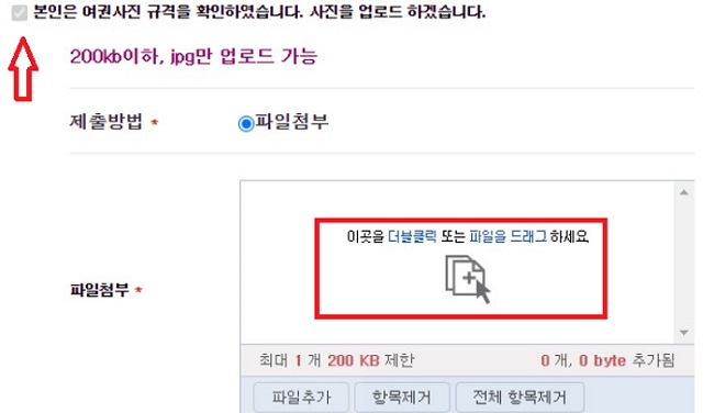 여권 사진 규격에 맞는 사진 이미지를 파일로 첨부합니다.