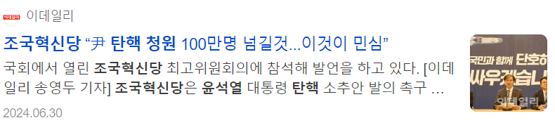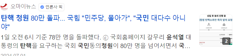 | 윤석열 대통령 탄핵 국회 청원 링크 사이트| 대기 없이 바로하는 방법 (2) | 2024.07.01 |