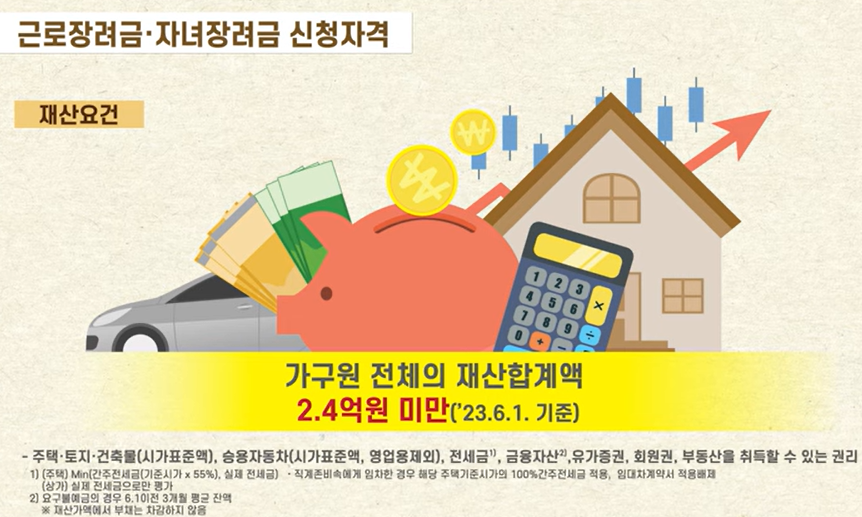 지원을 받으려면 특정한 재산 요건을 충족해야 하는데요. 가구원 모두의 재산 합산액이 2억 4천만원 미만이어야 한다는 것입니다.