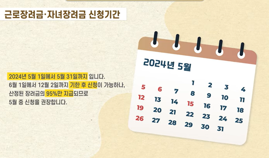🔽자녀장려금은 5월 31일까지 신청해야 하며 대상자가 신청하지 않으면 한푼도 받을 수 없어요.