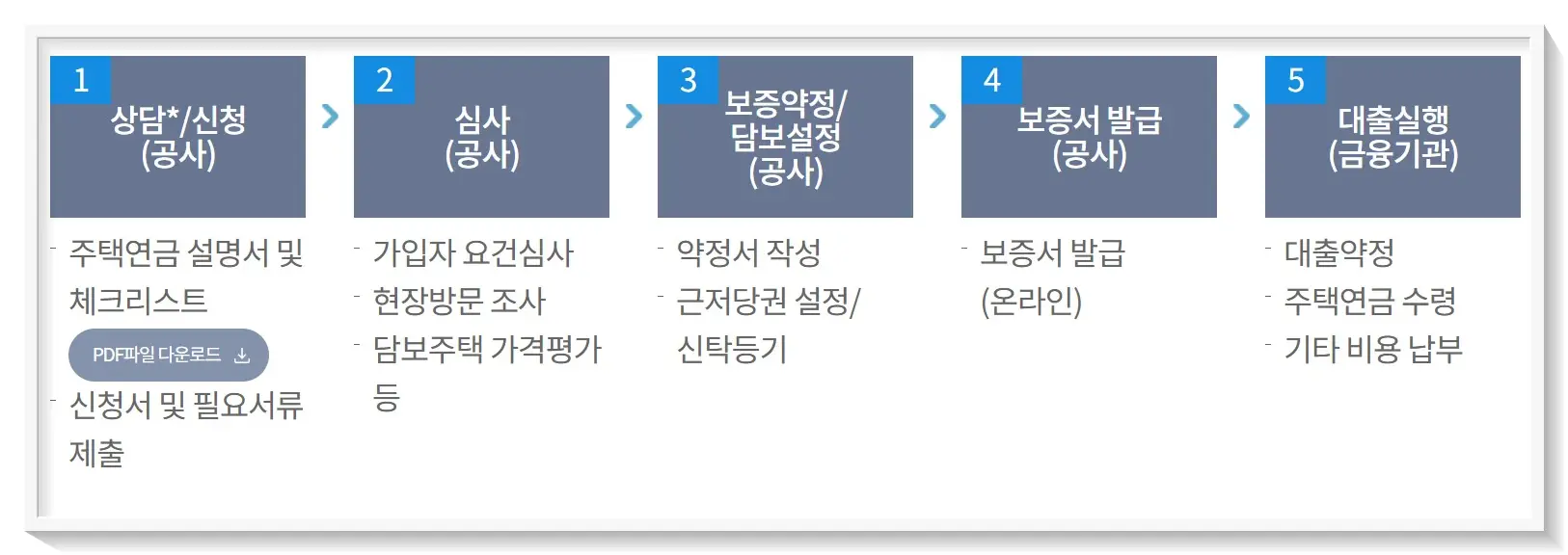 - 저당권 방식: 주택에 근저당권을 설정하여 한국금융공사에게 담보 제공