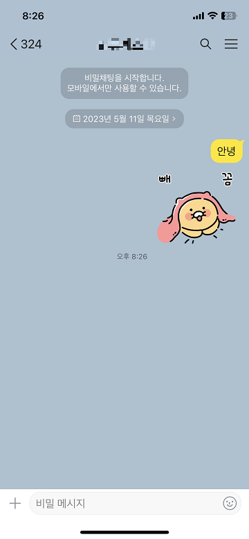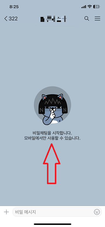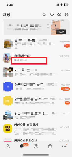 ⑤ 채팅 목록에서 보니 '비밀 메시지'라고 보이는 것을 확인할 수 있습니다.