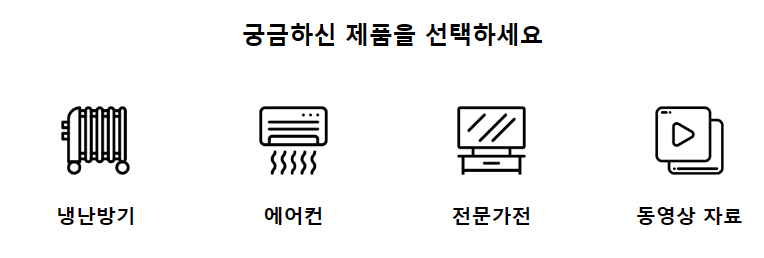 궁금한 제품에서 에어컨을 선택하면 아래에 에어컨에 관한 자가조치 FAQ 리스트가 나옵니다.