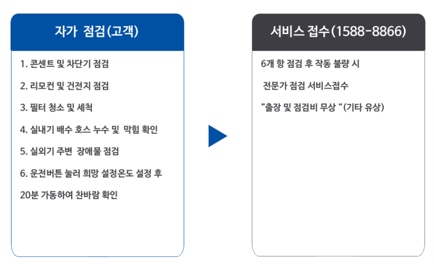🔽에어컨 가동 전에 사전 자가 점검 방법도 확인해보세요.