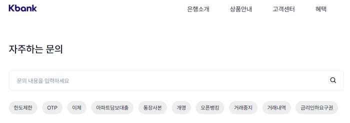 케이뱅크 고객센터로 전화걸기 전, 케이뱅크 홈페이지에서 궁금한 질문을 찾아볼 수 있어요.